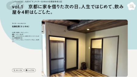 新連載!【ハンケイ500m】よそものだけど、大好きです/vol.1 京都に家を借りた次の日。人生ではじめて、飲み屋を4軒はしごした。