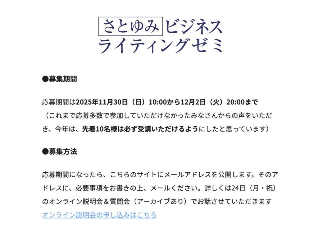 【さとゆみビジネスライティングゼミ・2026年スタートの6期生を募集します】