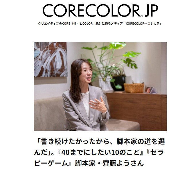 【CORECOLOR.JP】「書き続けたかったから、脚本家の道を選んだ」。『40までにしたい10のこと』『セラピーゲーム』脚本家・齊藤ようさん