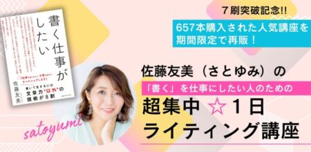 9月6日(土)に開催した、『上阪徹 × 佐藤友美(さとゆみ):「本を出したい」人のための「超集中☆講座」』のアーカイブ販売は、11月中旬ごろで終了予定です。 本作りに興味のある方や気になる方は、ぜひチェックくださいませ! […]